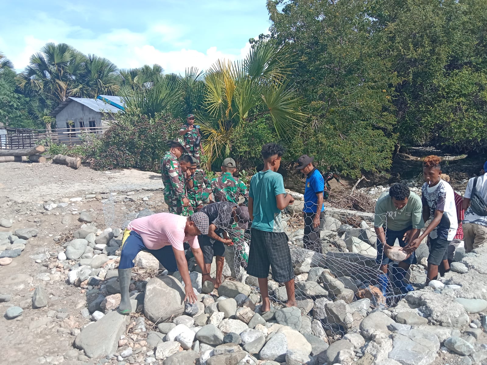 Maka itu secara antusias, saya bersama warga dibantu TNI-Polri untuk turun langsung memperbaiki jalan yang rusak dan memasang Bronjong sebagai penahan pada area yang rusak itu, tutur Rinto sapaan akrabnya.